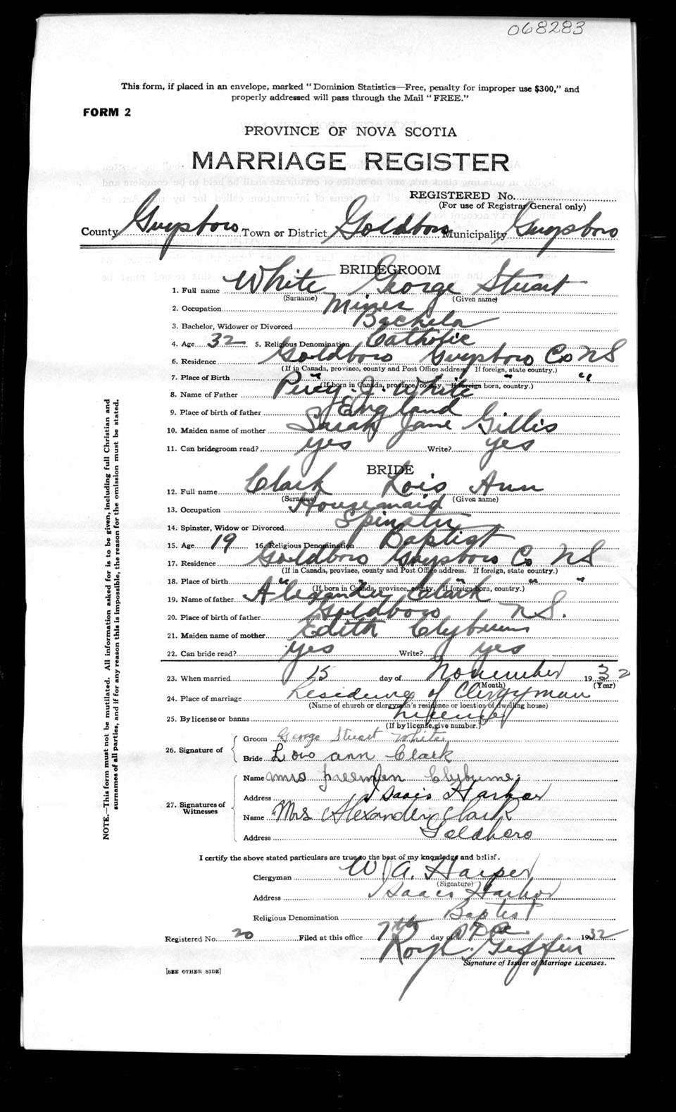 Registration: Year: 1932 number: 68283