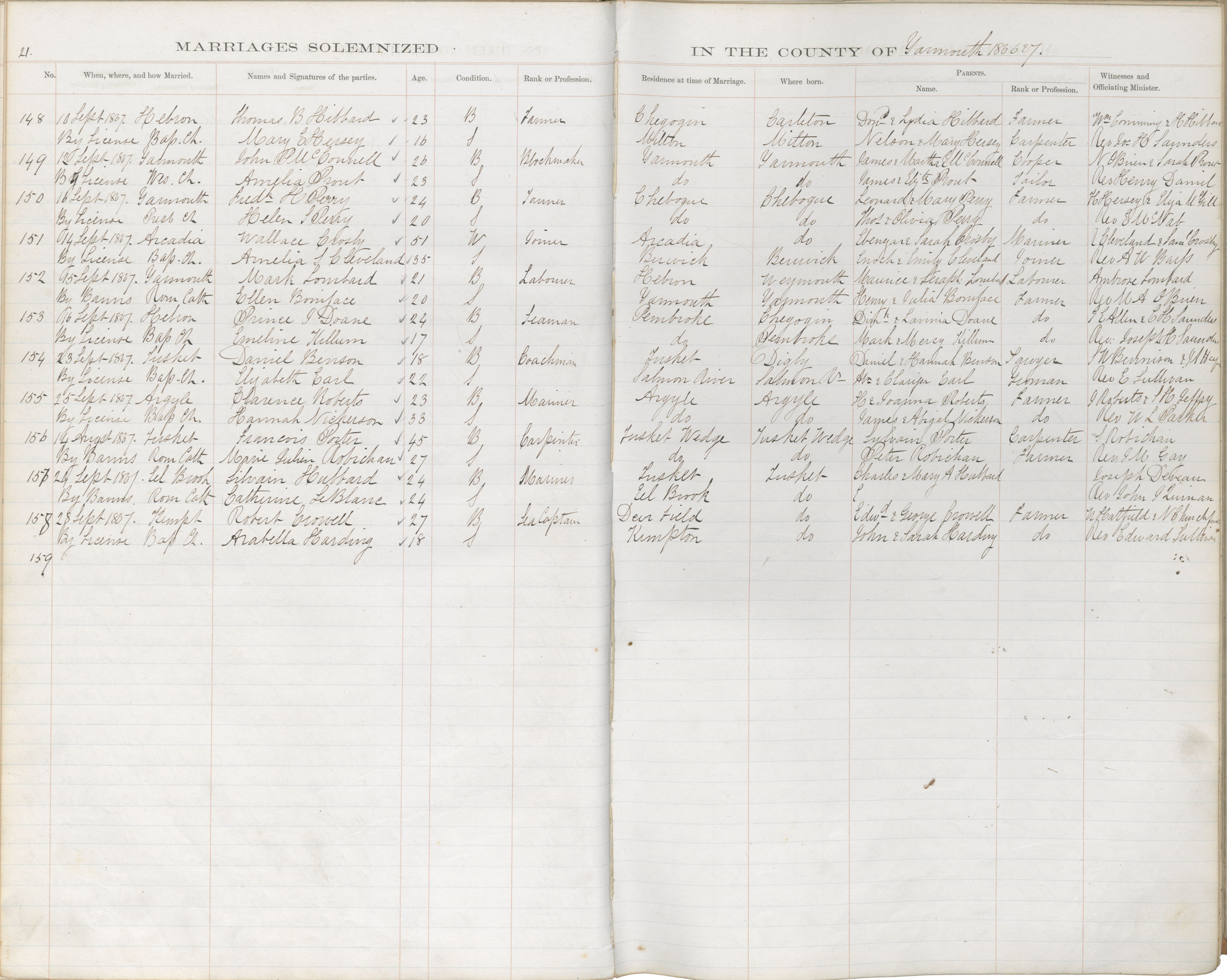 Registration: Year: 1867 book: 1839 page: 21 number: 148