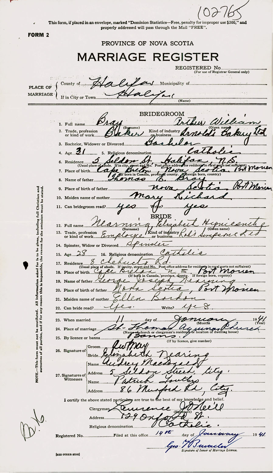 Registration: Year: 1941 number: 102765