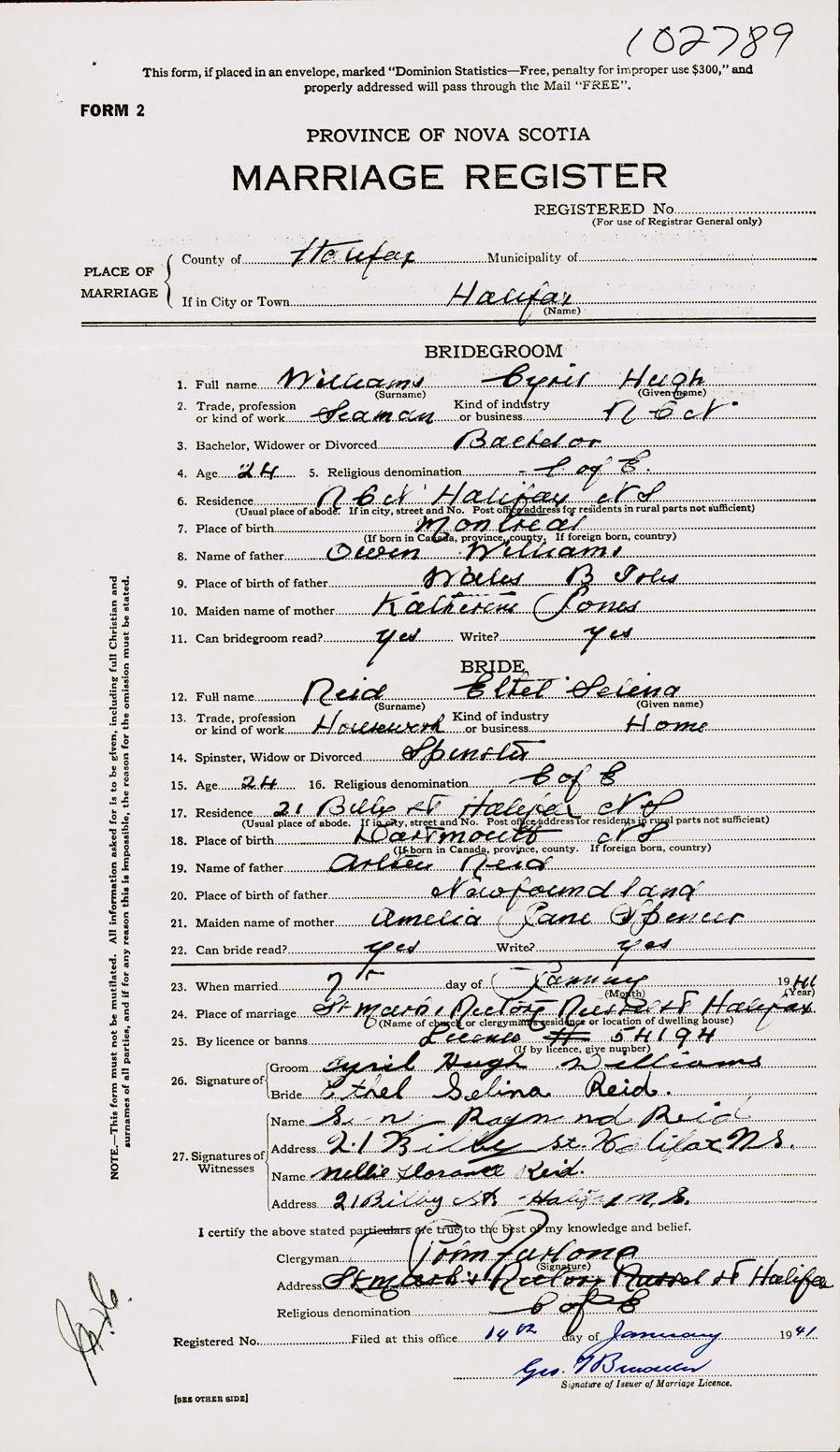 Registration: Year: 1941 number: 102789