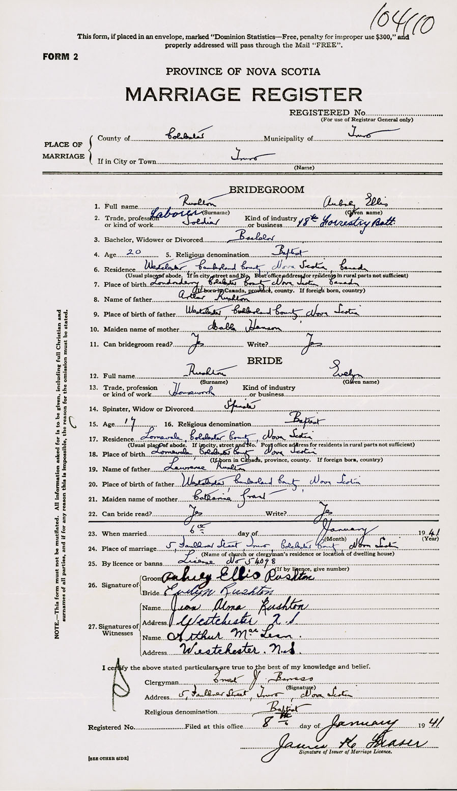 Registration: Year: 1941 number: 104110