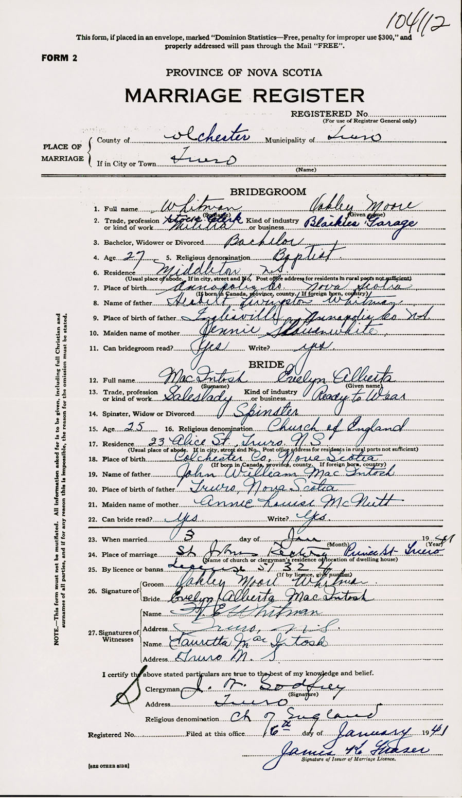 Registration: Year: 1941 number: 104112