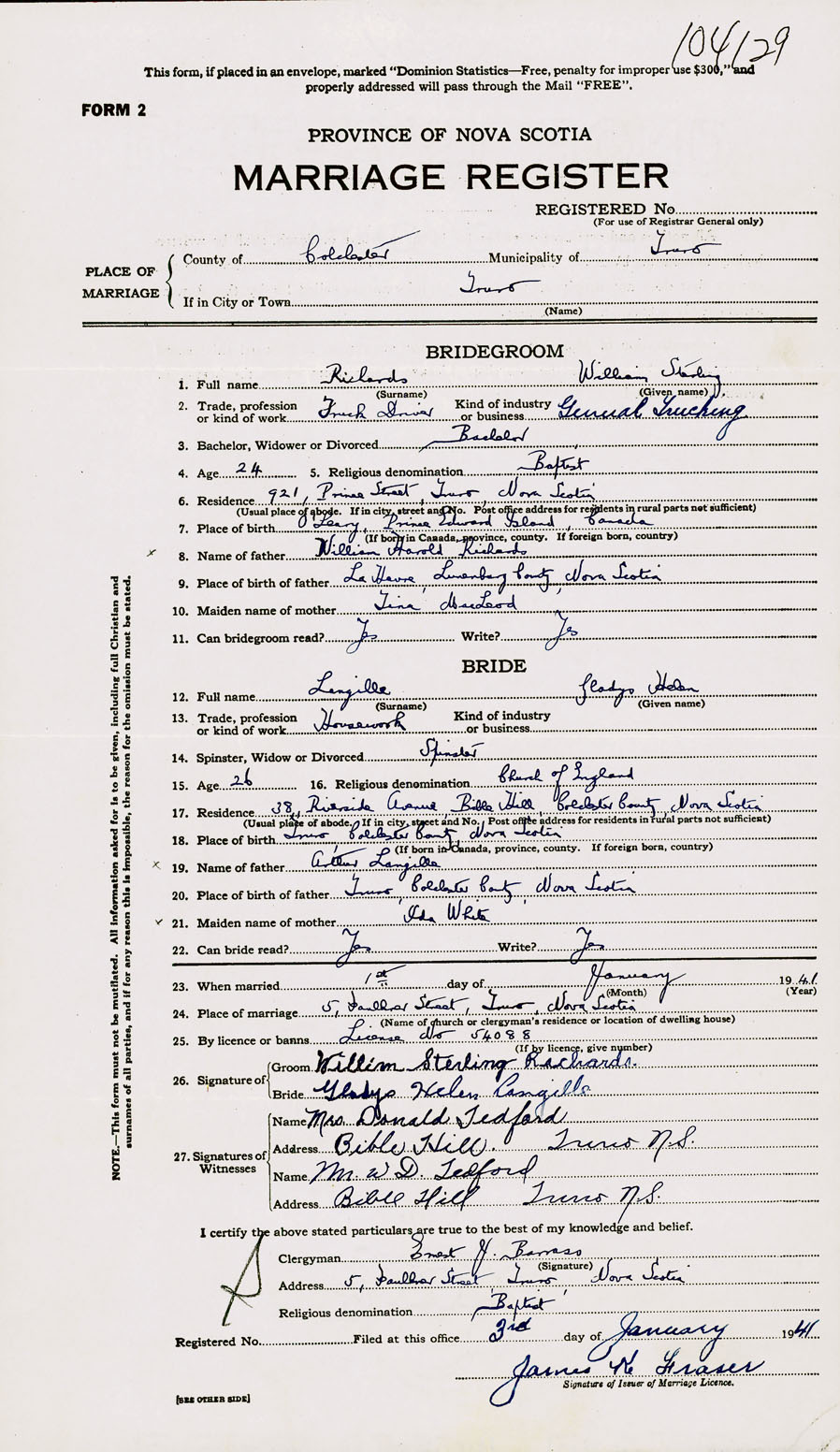Registration: Year: 1941 number: 104129