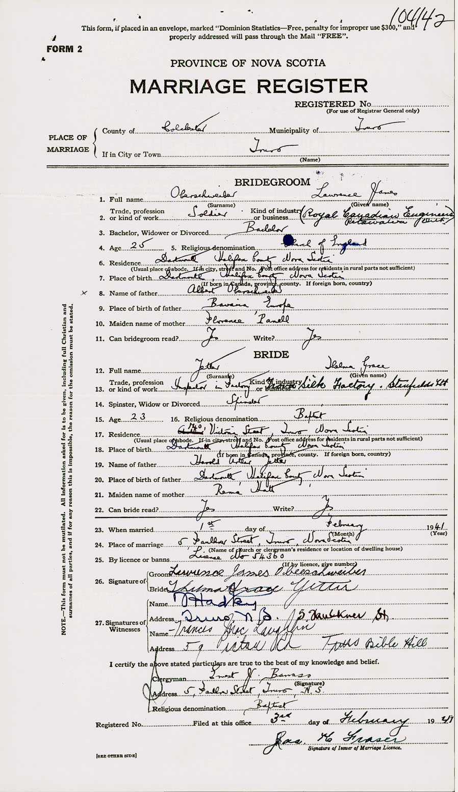 Registration: Year: 1941 number: 104142