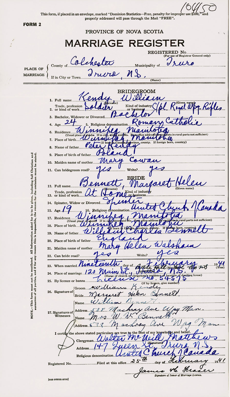 Registration: Year: 1941 number: 104150