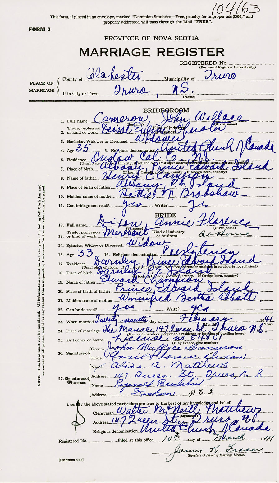 Registration: Year: 1941 number: 104163