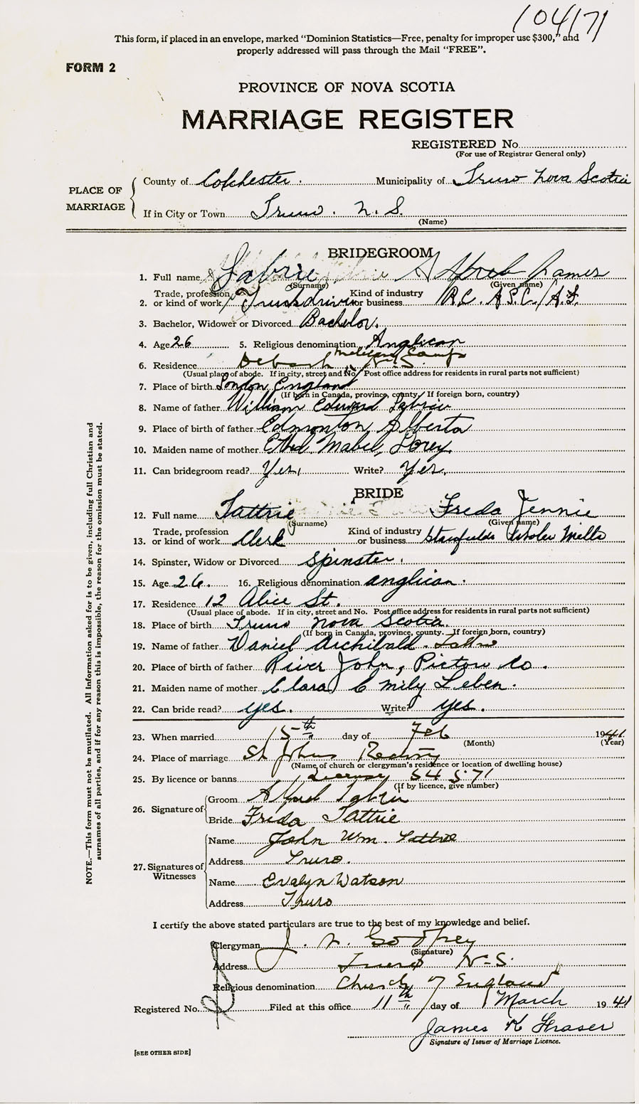 Registration: Year: 1941 number: 104171