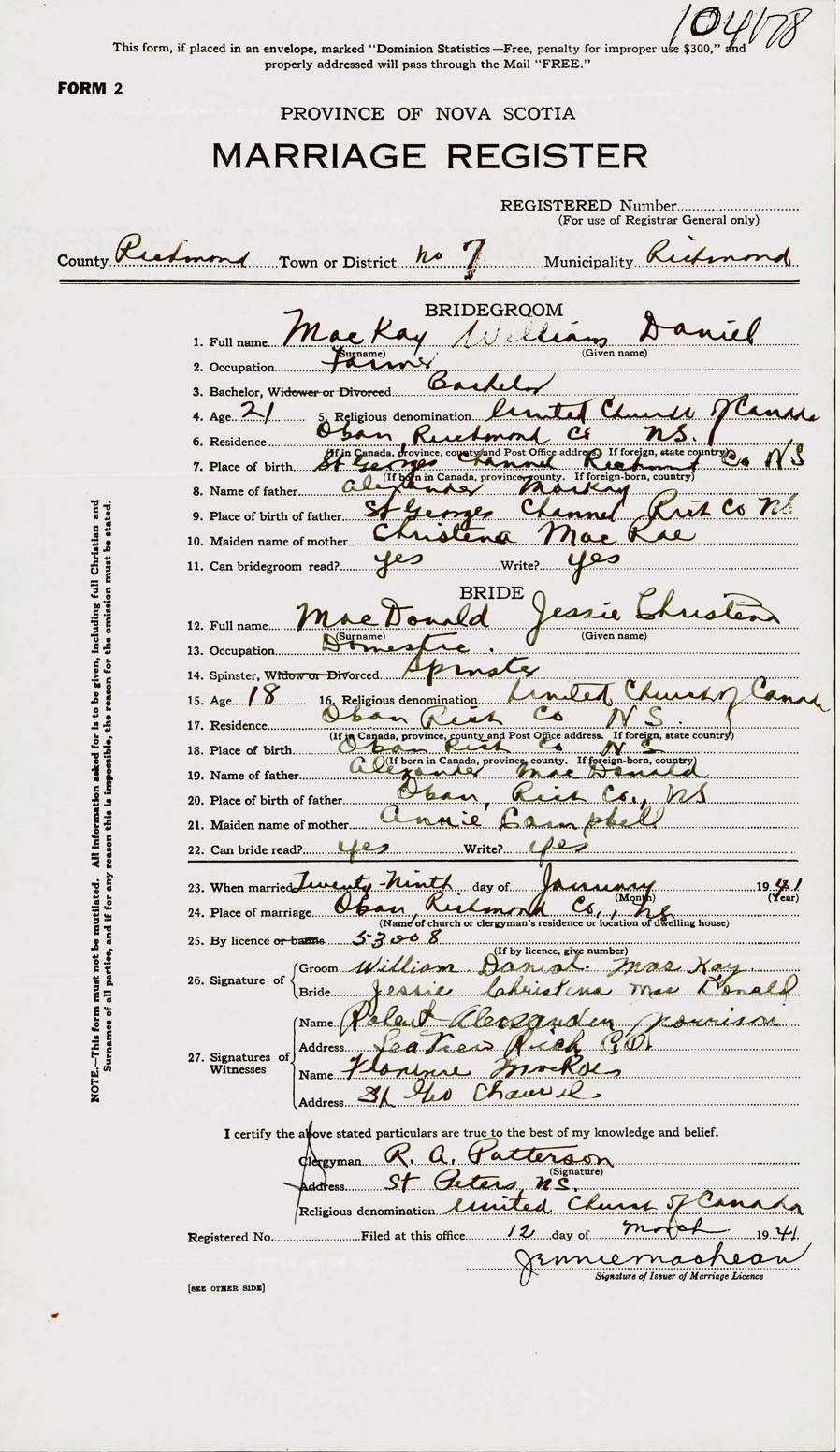 Registration: Year: 1941 number: 104178