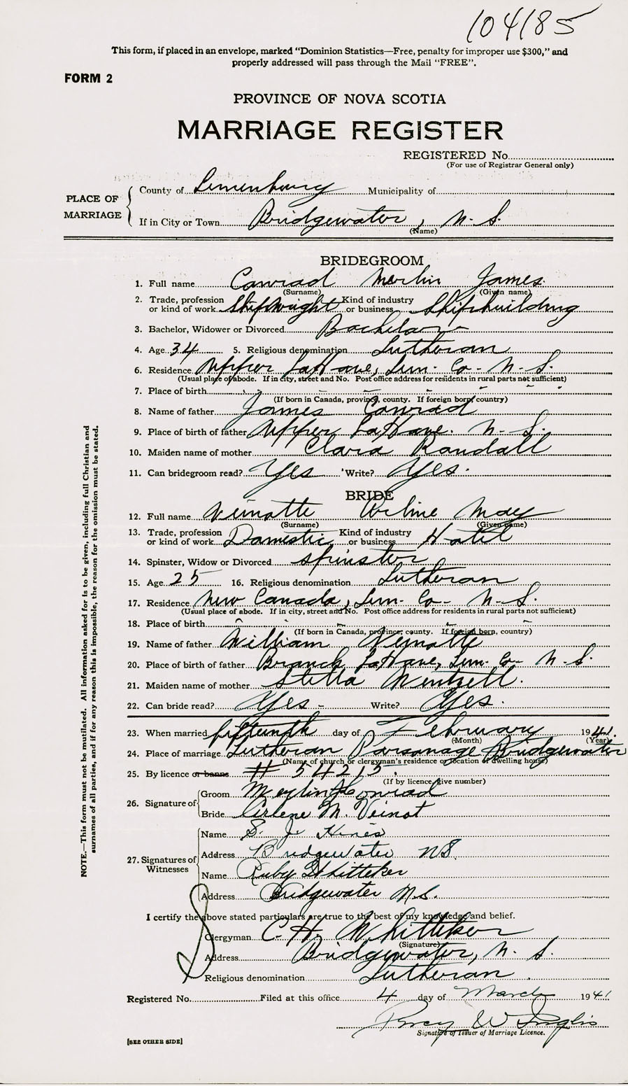 Registration: Year: 1941 number: 104185