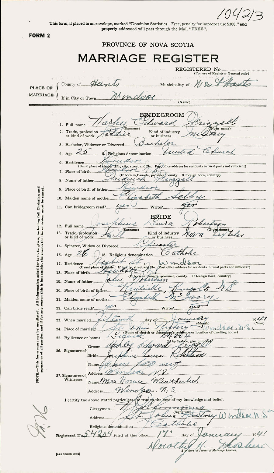 Registration: Year: 1941 number: 104213