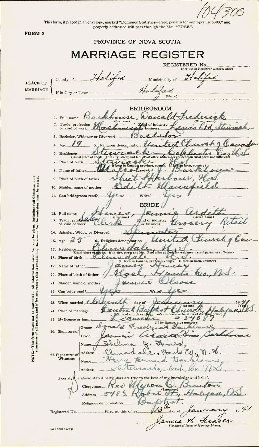 Registration: Year: 1941 number: 104300