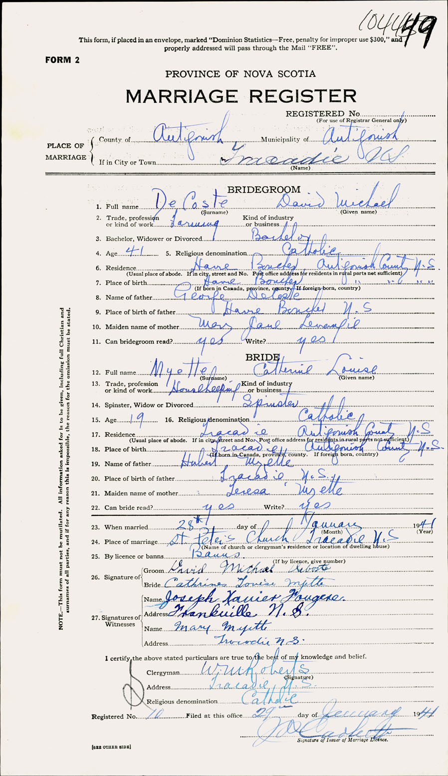 Registration: Year: 1941 number: 104449