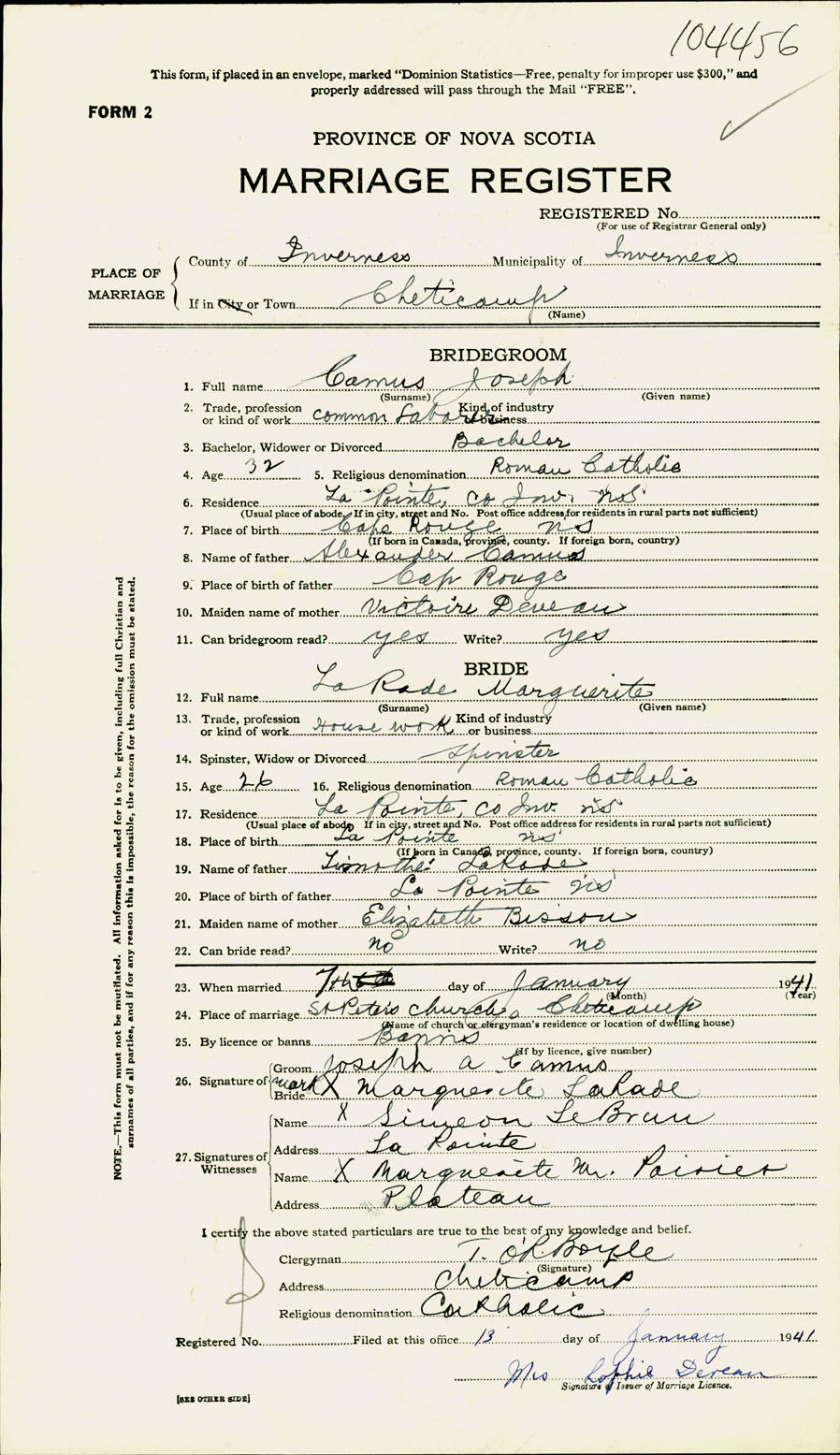 Registration: Year: 1941 number: 104456