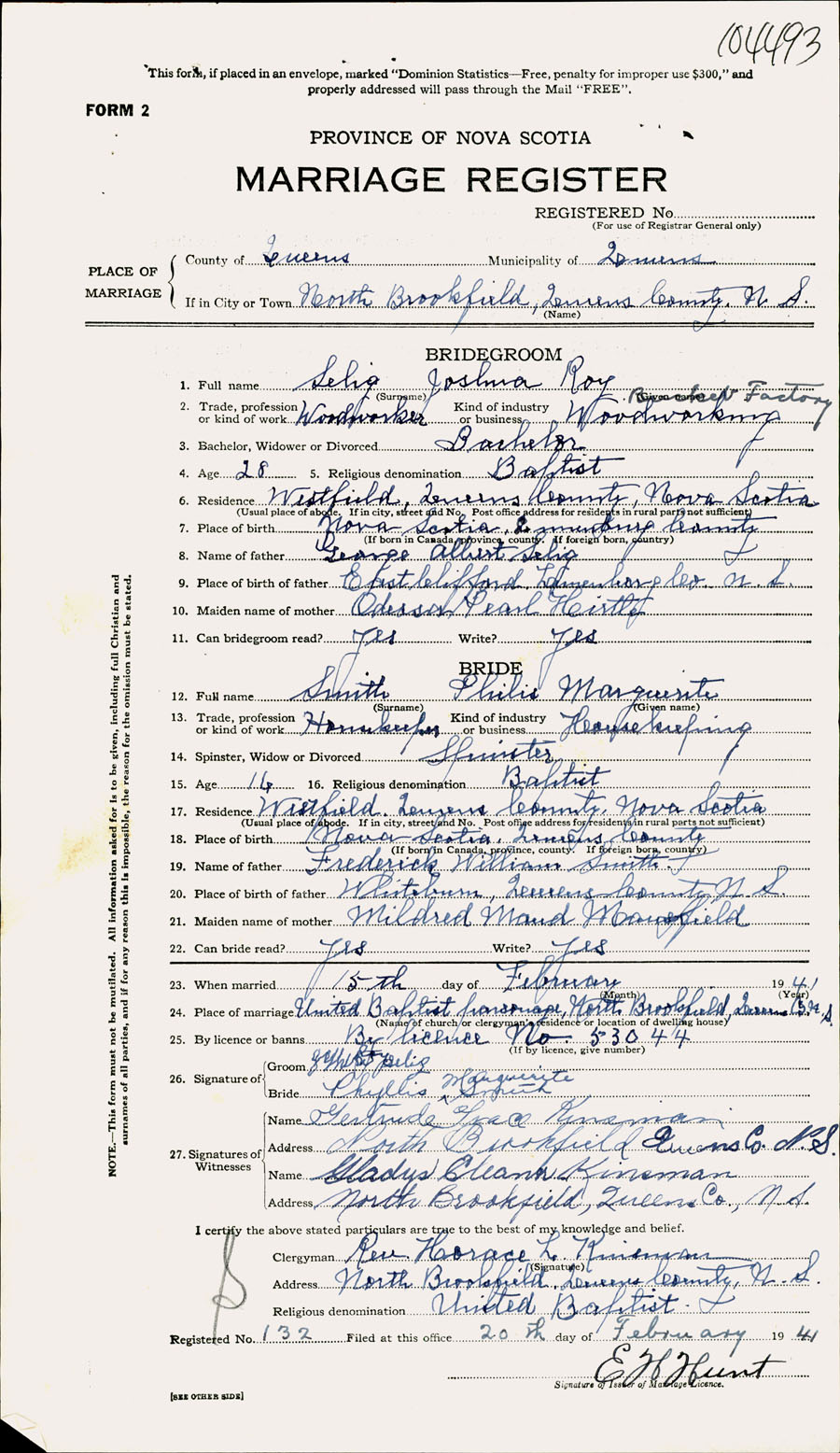 Registration: Year: 1941 number: 104493