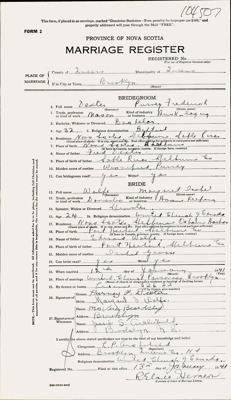 Registration: Year: 1941 number: 104507