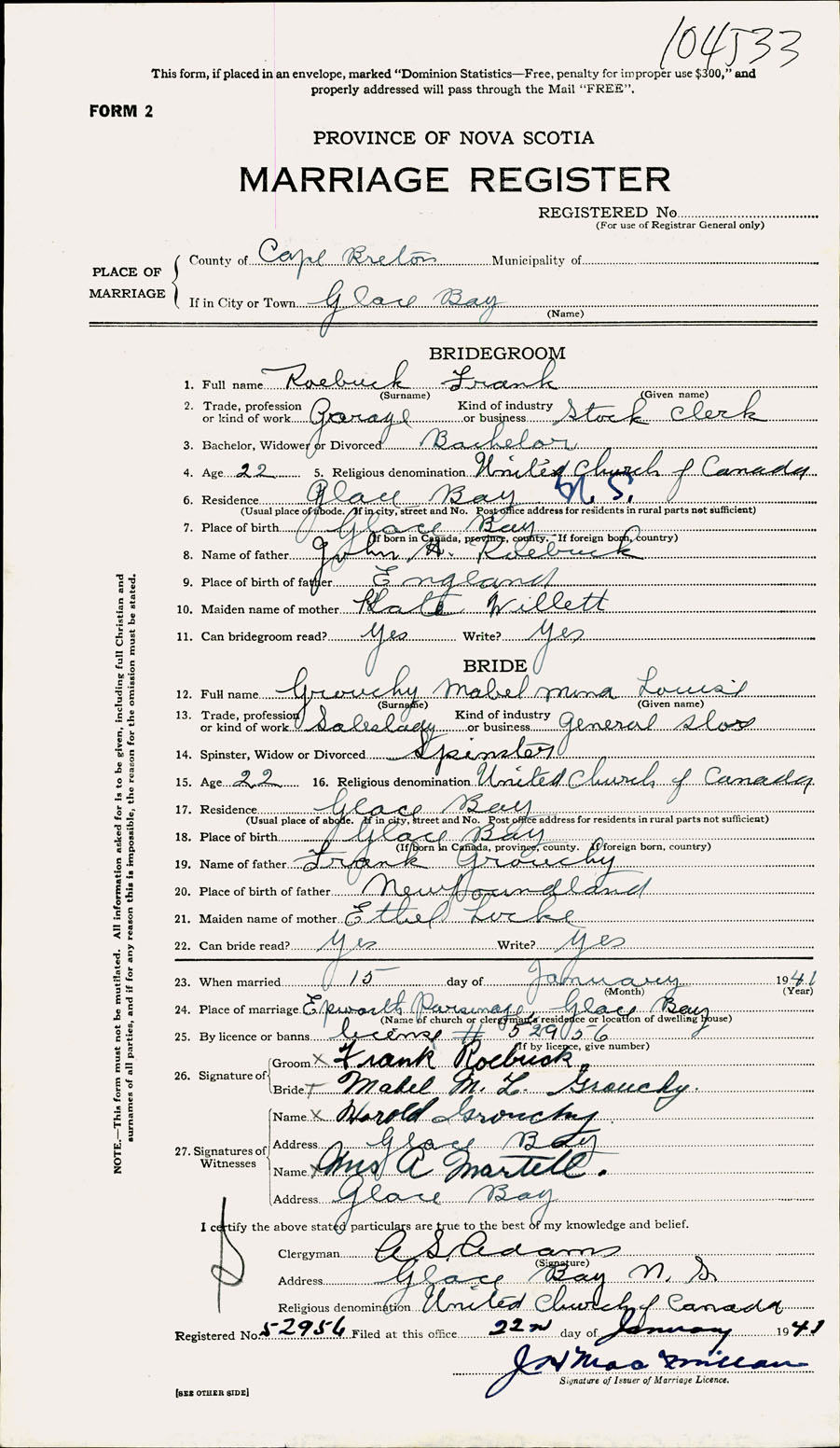 Registration: Year: 1941 number: 104533