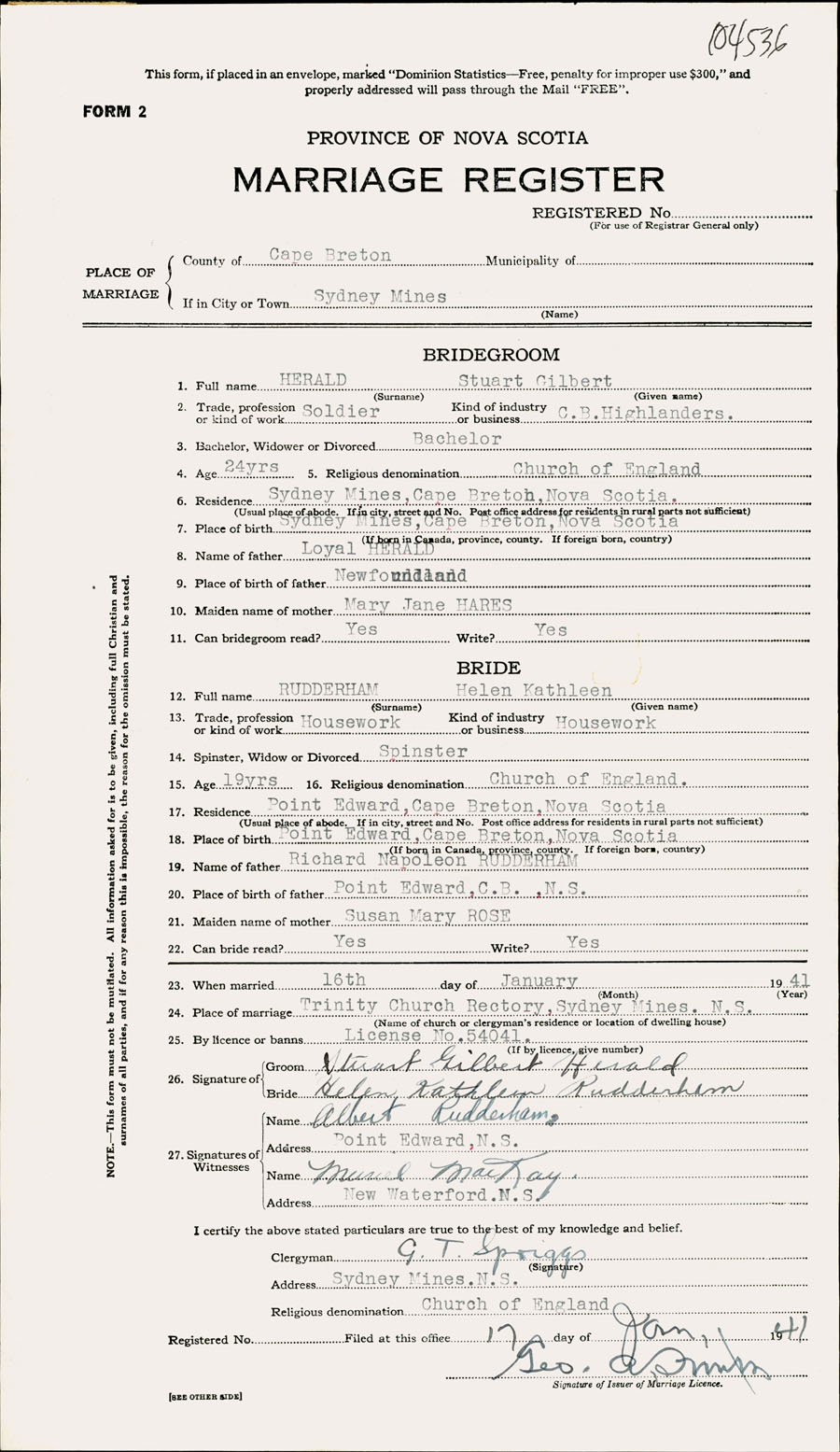 Registration: Year: 1941 number: 104536