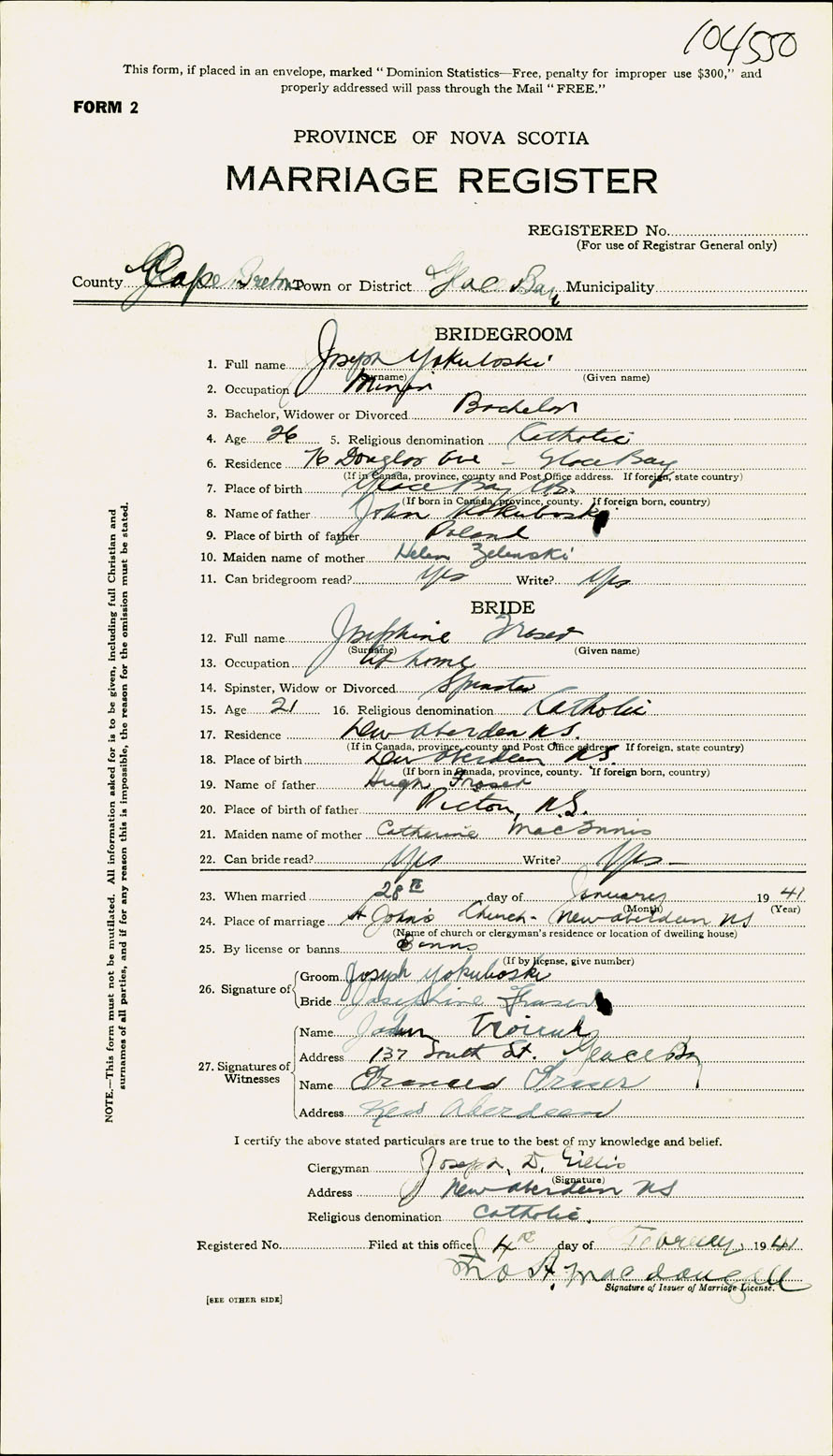 Registration: Year: 1941 number: 104550
