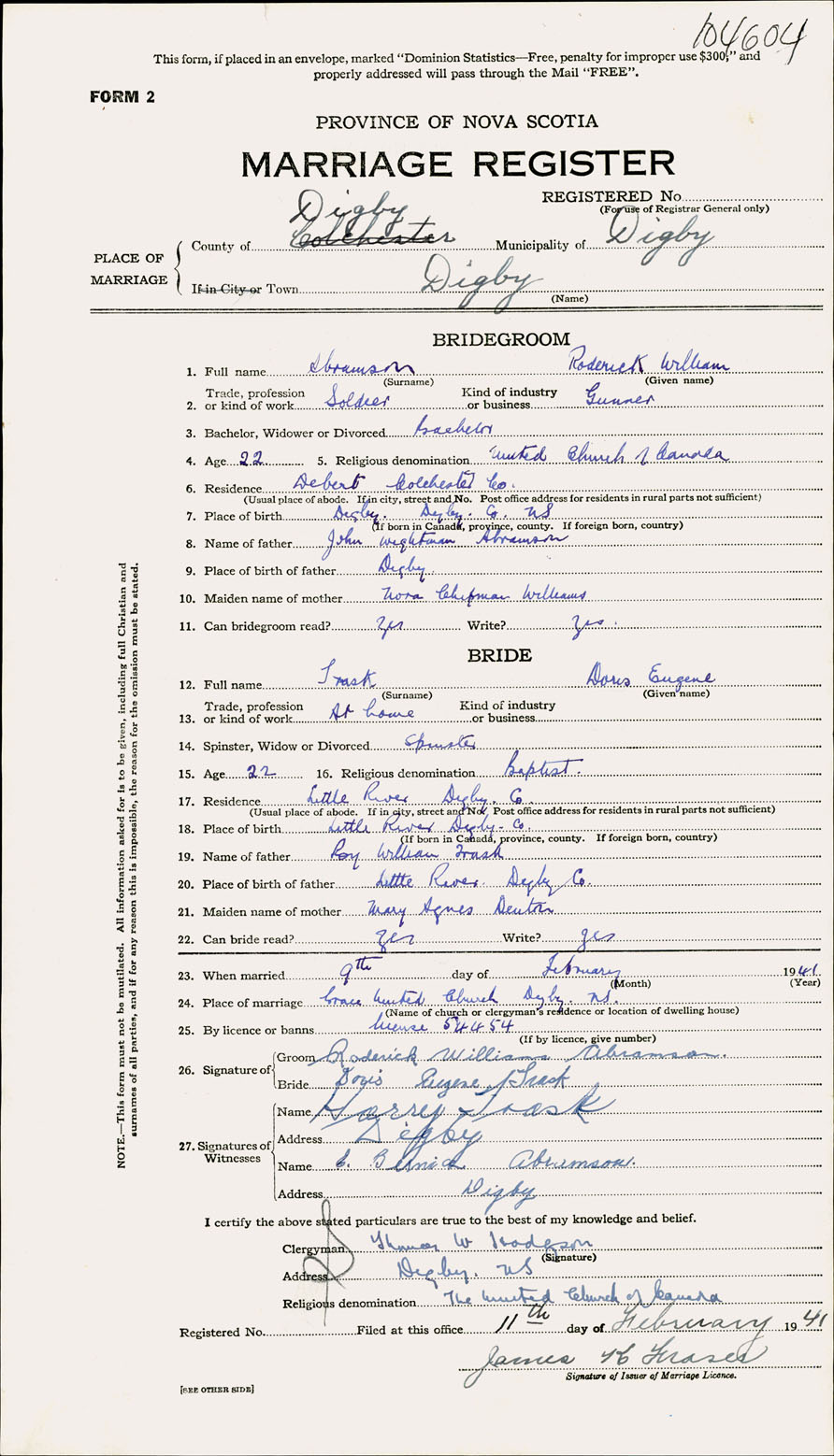 Registration: Year: 1941 number: 104604