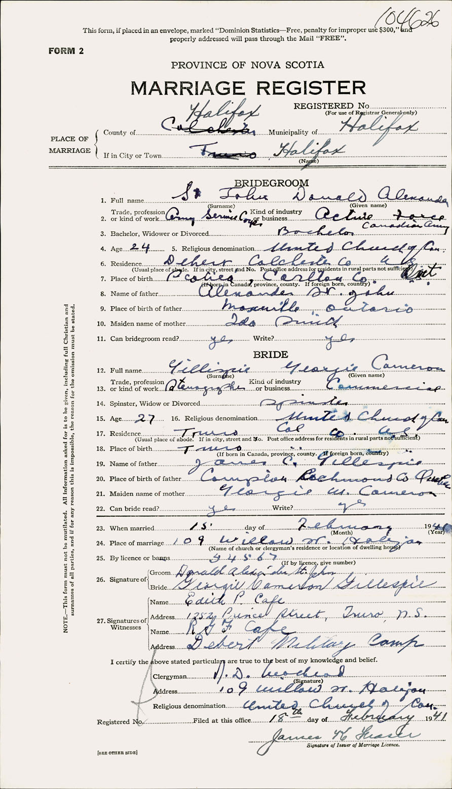 Registration: Year: 1941 number: 104626