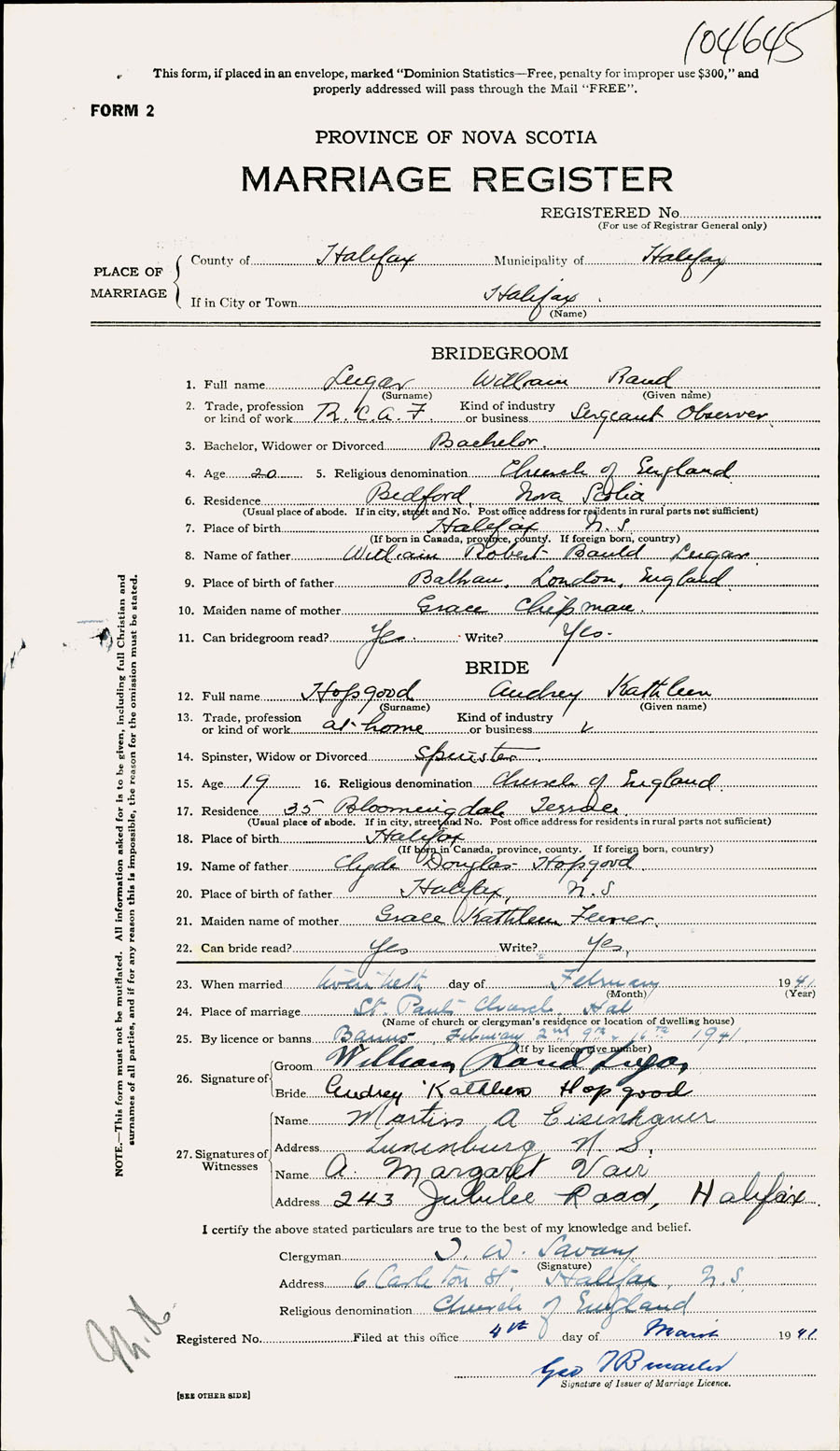 Registration: Year: 1941 number: 104645
