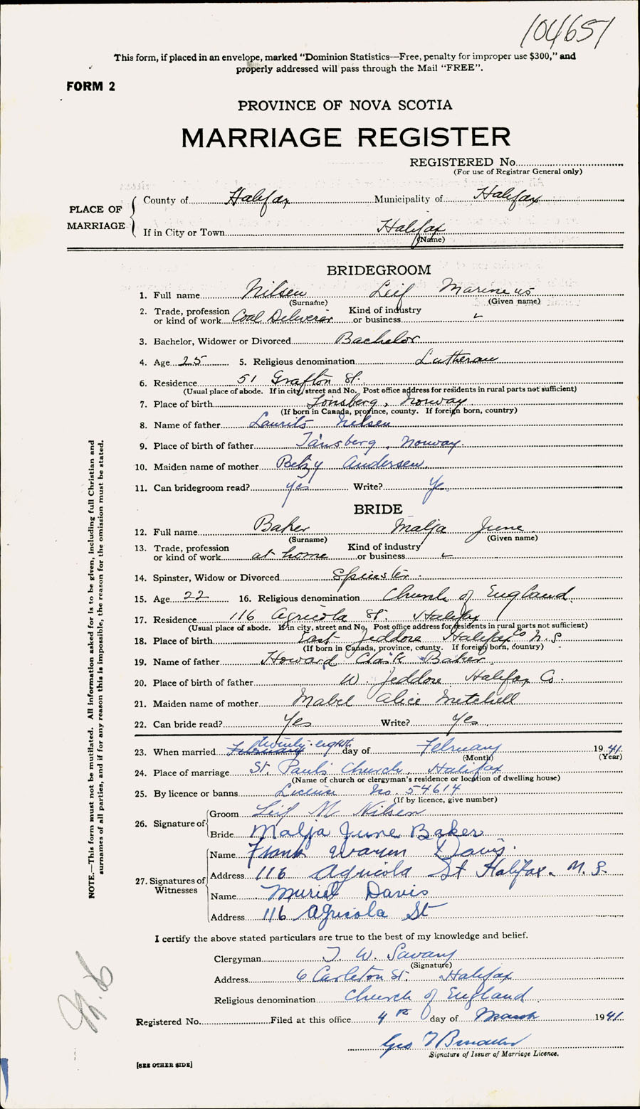 Registration: Year: 1941 number: 104651