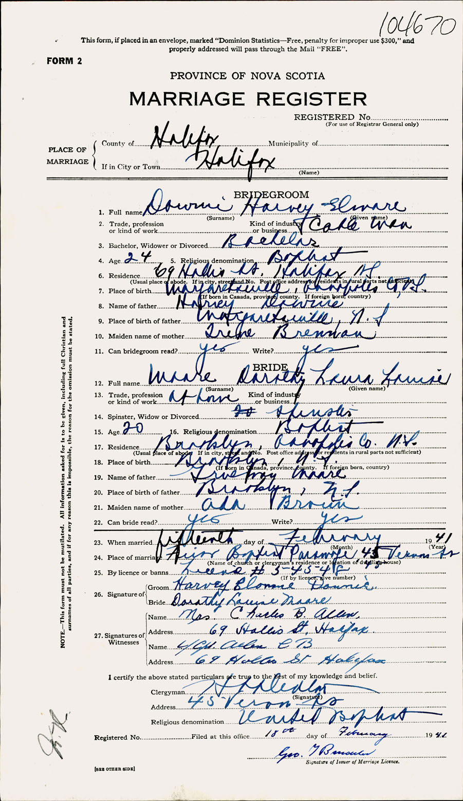 Registration: Year: 1941 number: 104670