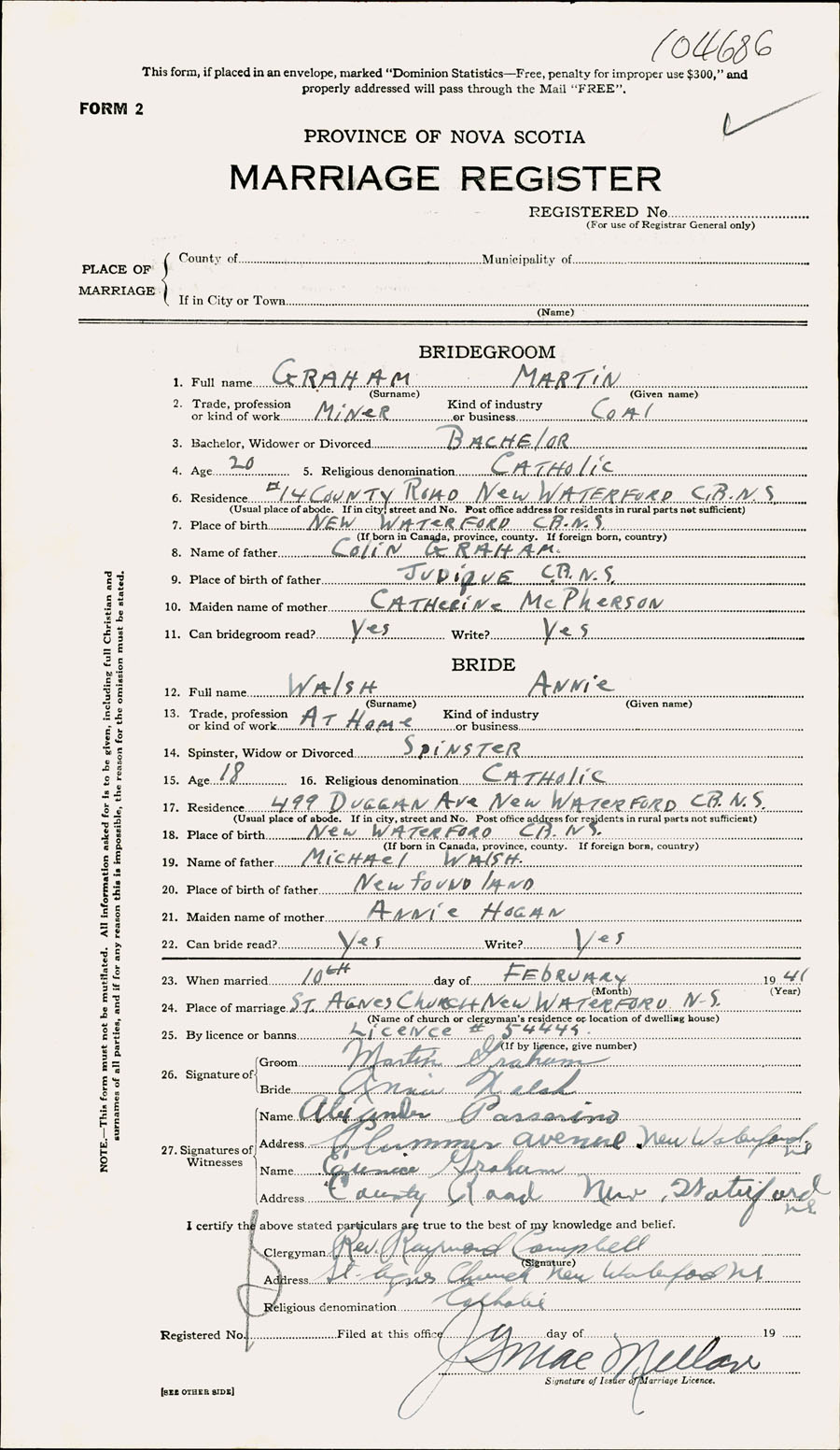 Registration: Year: 1941 number: 104686