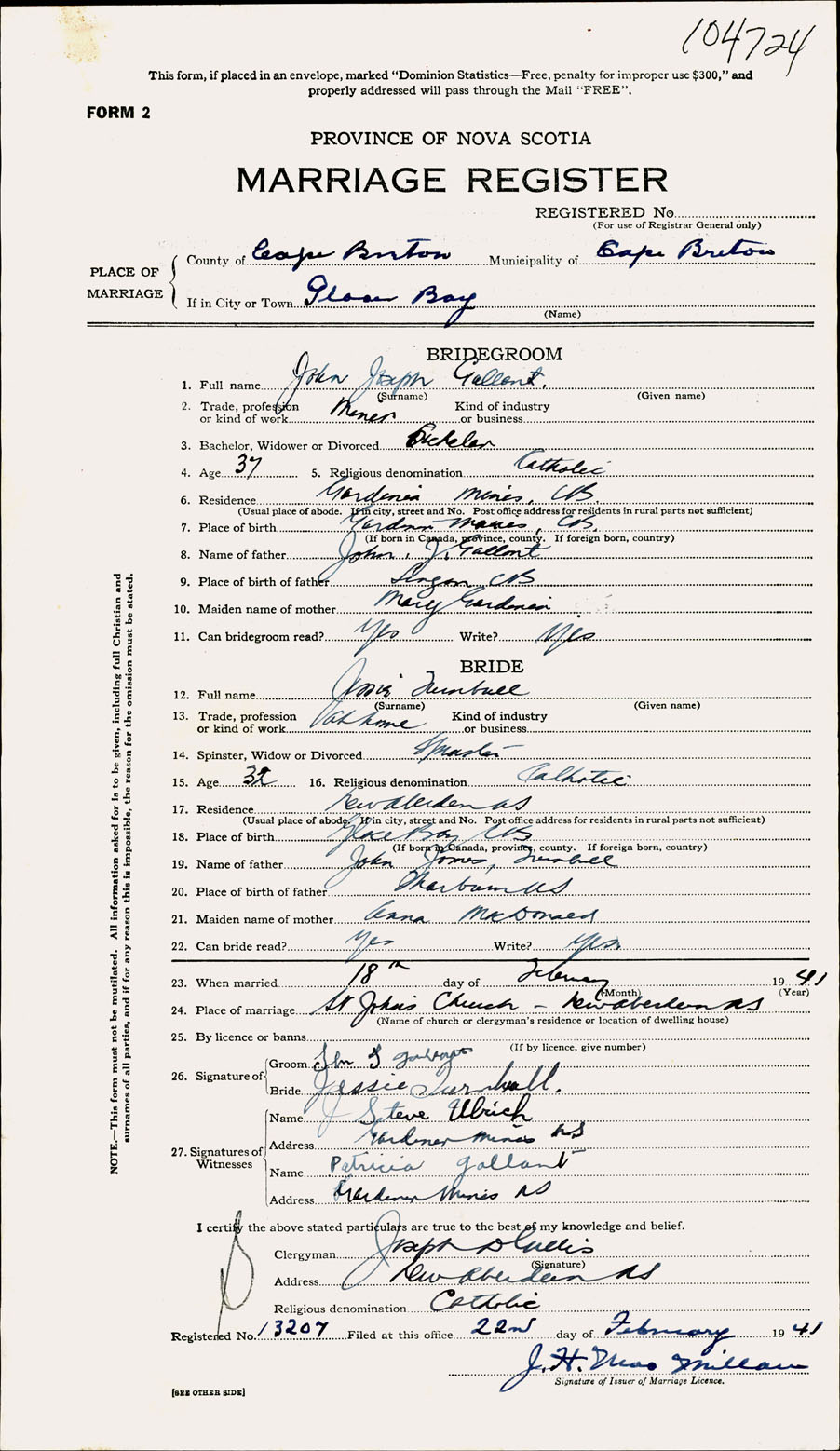 Registration: Year: 1941 number: 104724