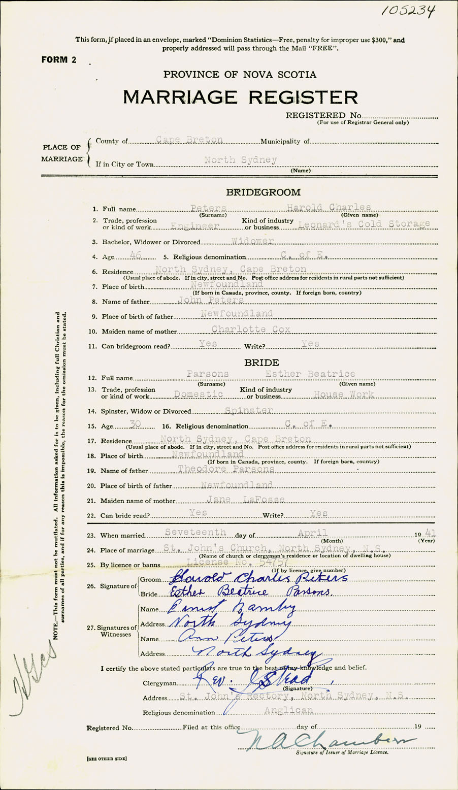 Registration: Year: 1941 number: 105234
