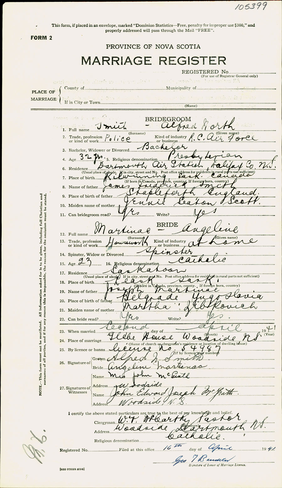 Registration: Year: 1941 number: 105399