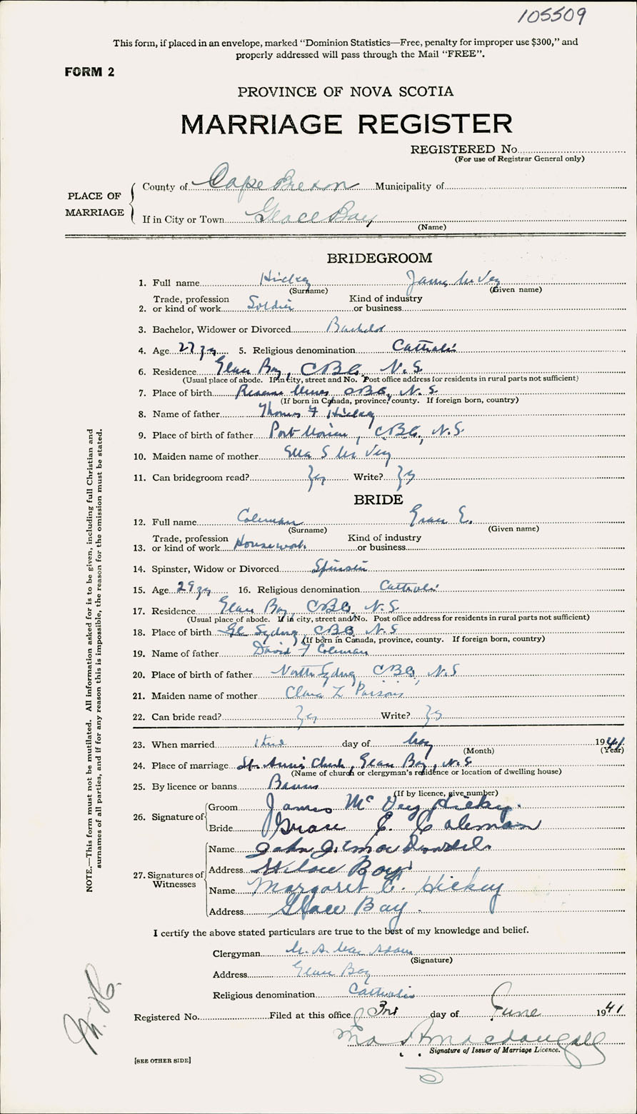 Registration: Year: 1941 number: 105509