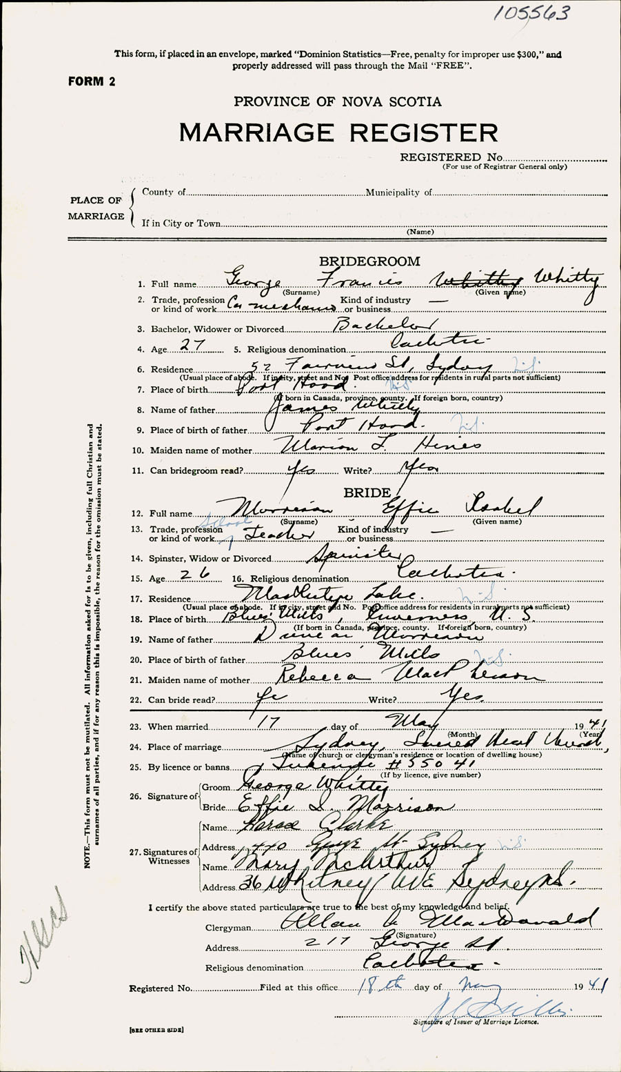 Registration: Year: 1941 number: 105563