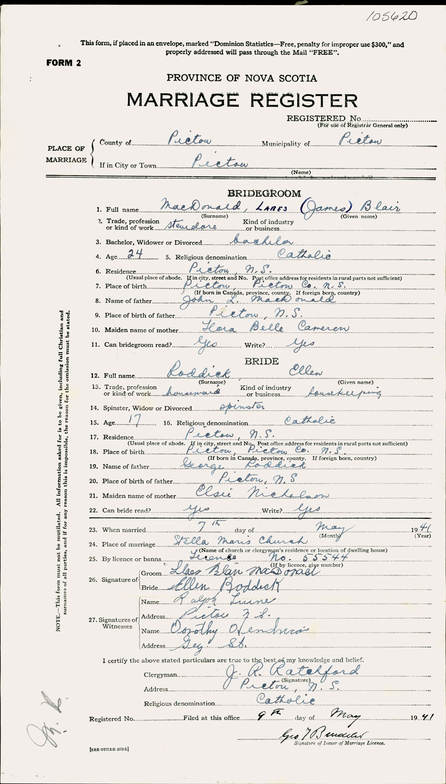 Registration: Year: 1941 number: 105620