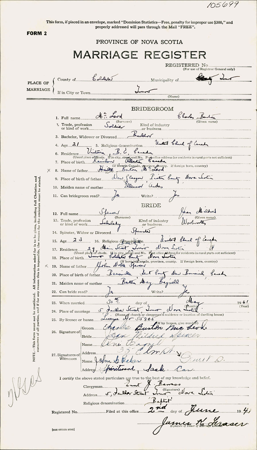 Registration: Year: 1941 number: 105699