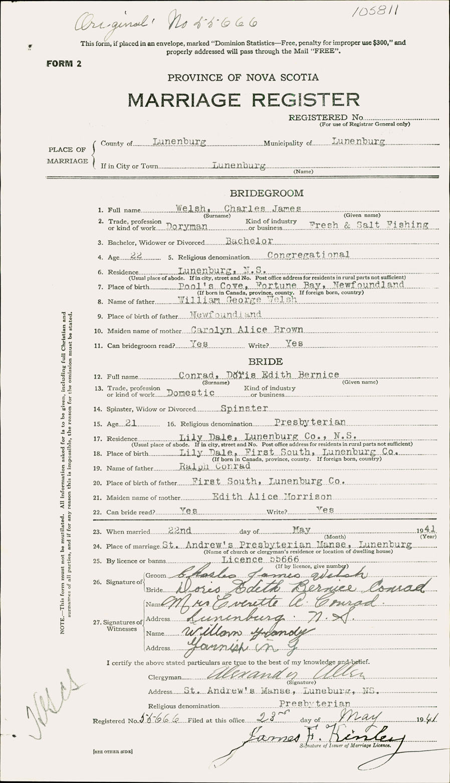 Registration: Year: 1941 number: 105811