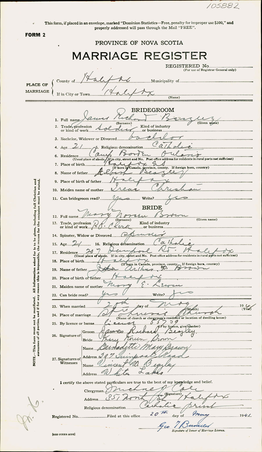 Registration: Year: 1941 number: 105882