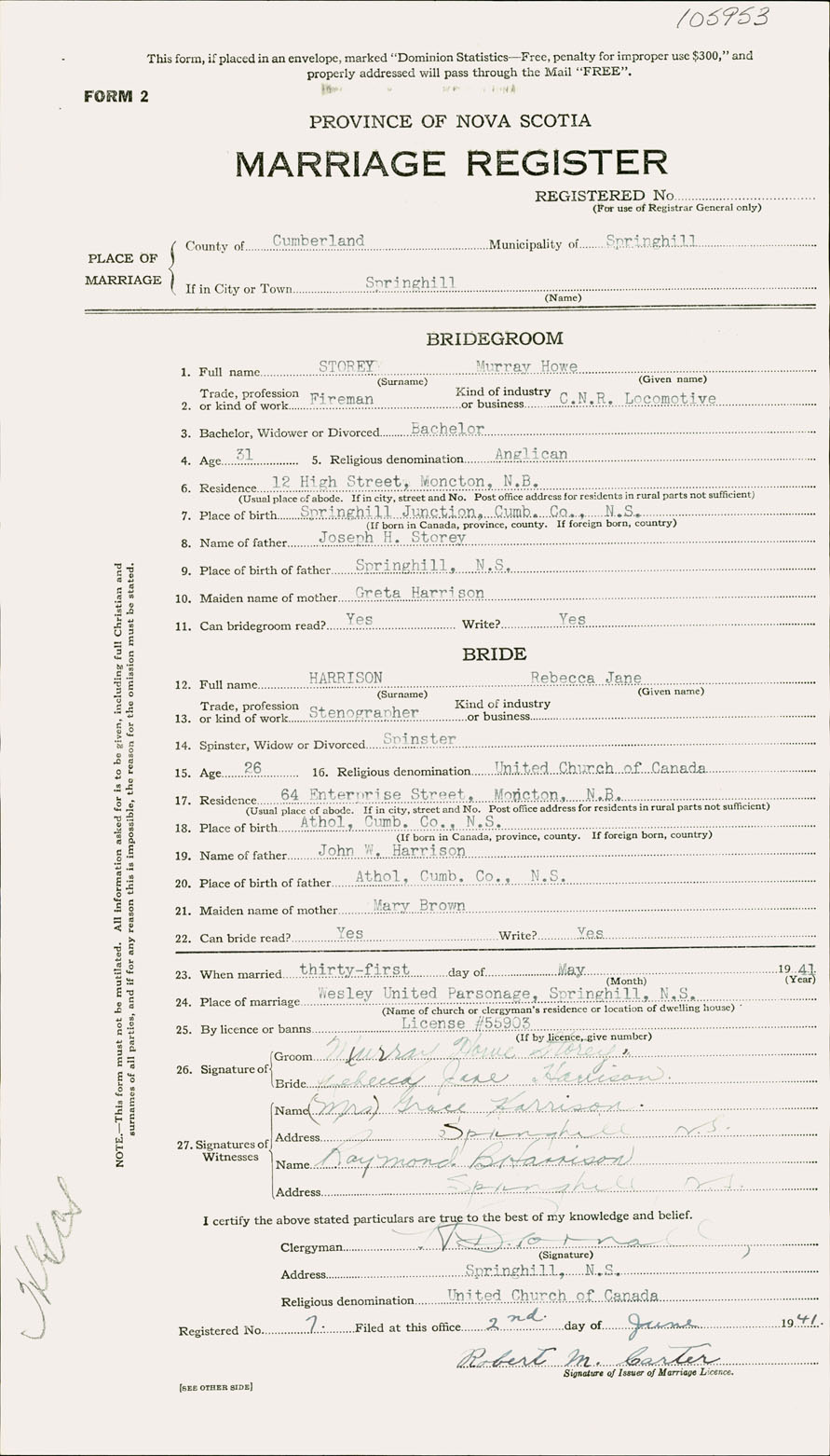 Registration: Year: 1941 number: 105953