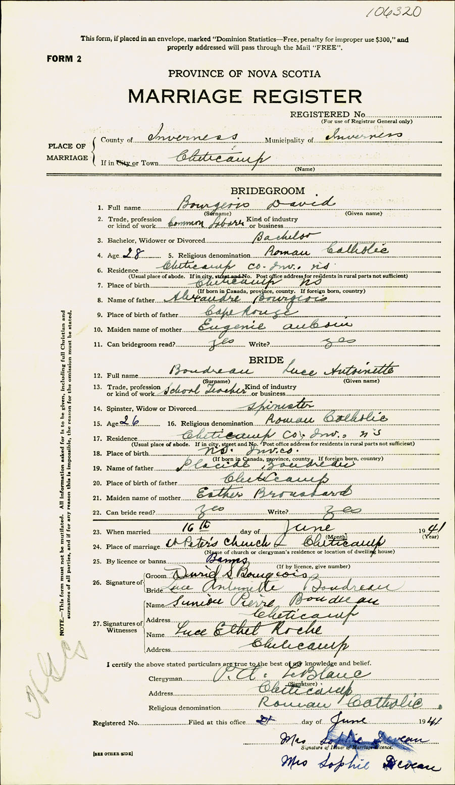 Registration: Year: 1941 number: 106320