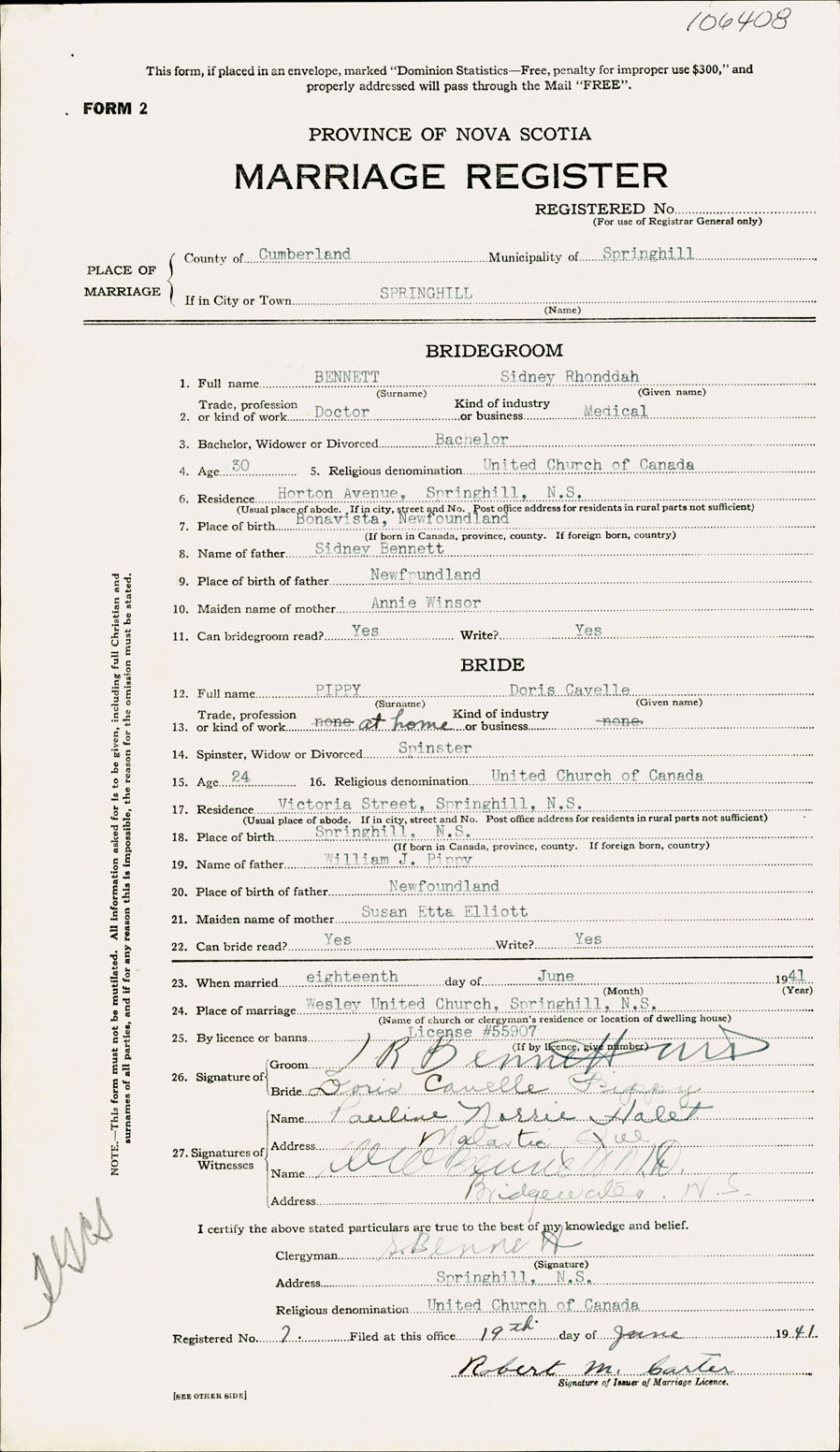 Registration: Year: 1941 number: 106408