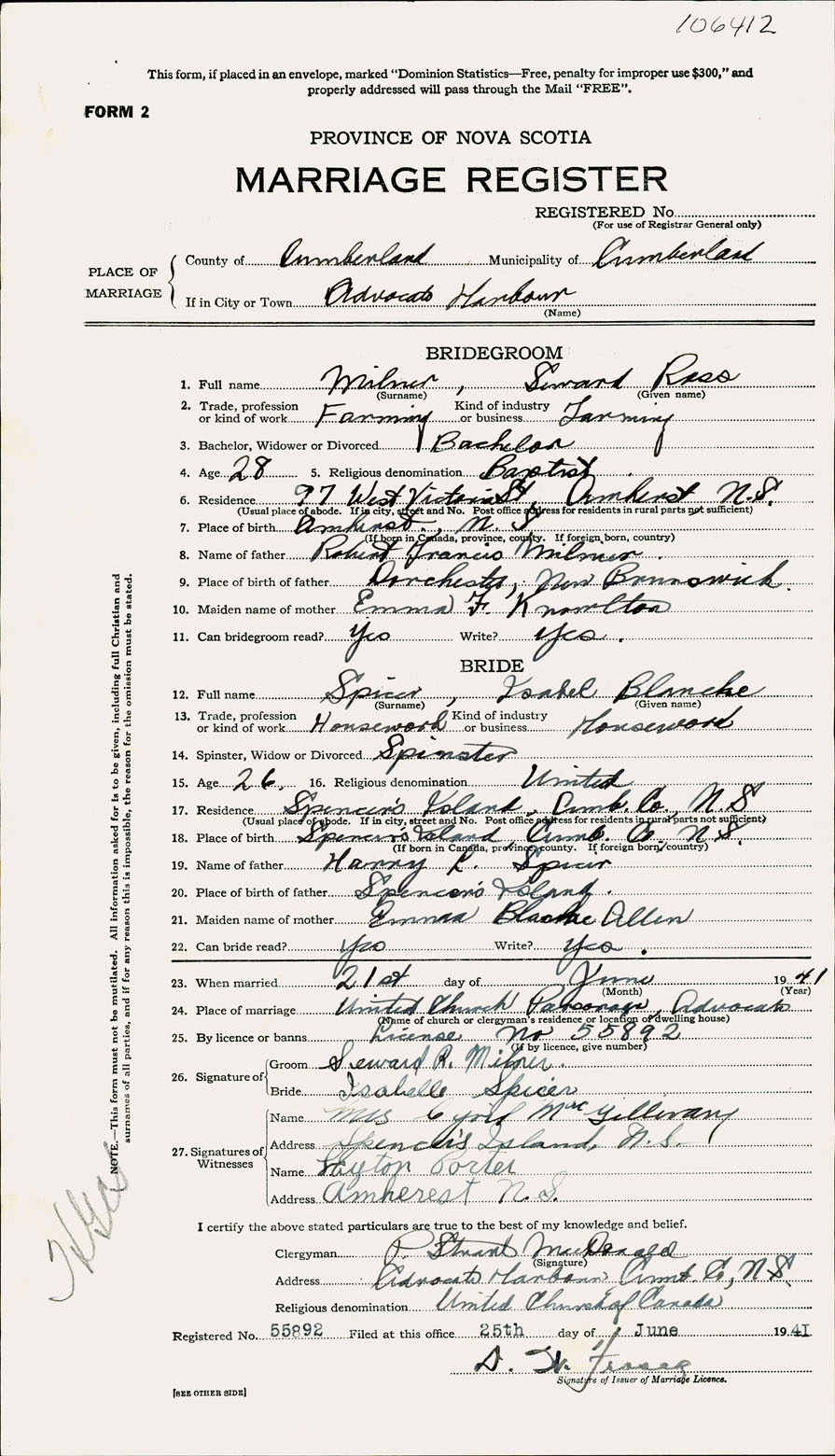 Registration: Year: 1941 number: 106412