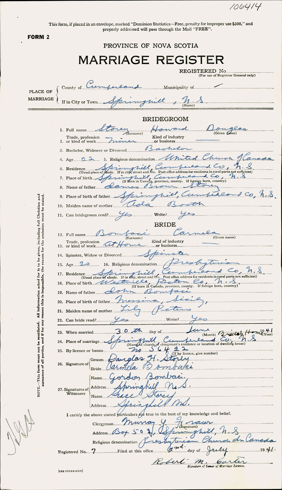 Registration: Year: 1941 number: 106414