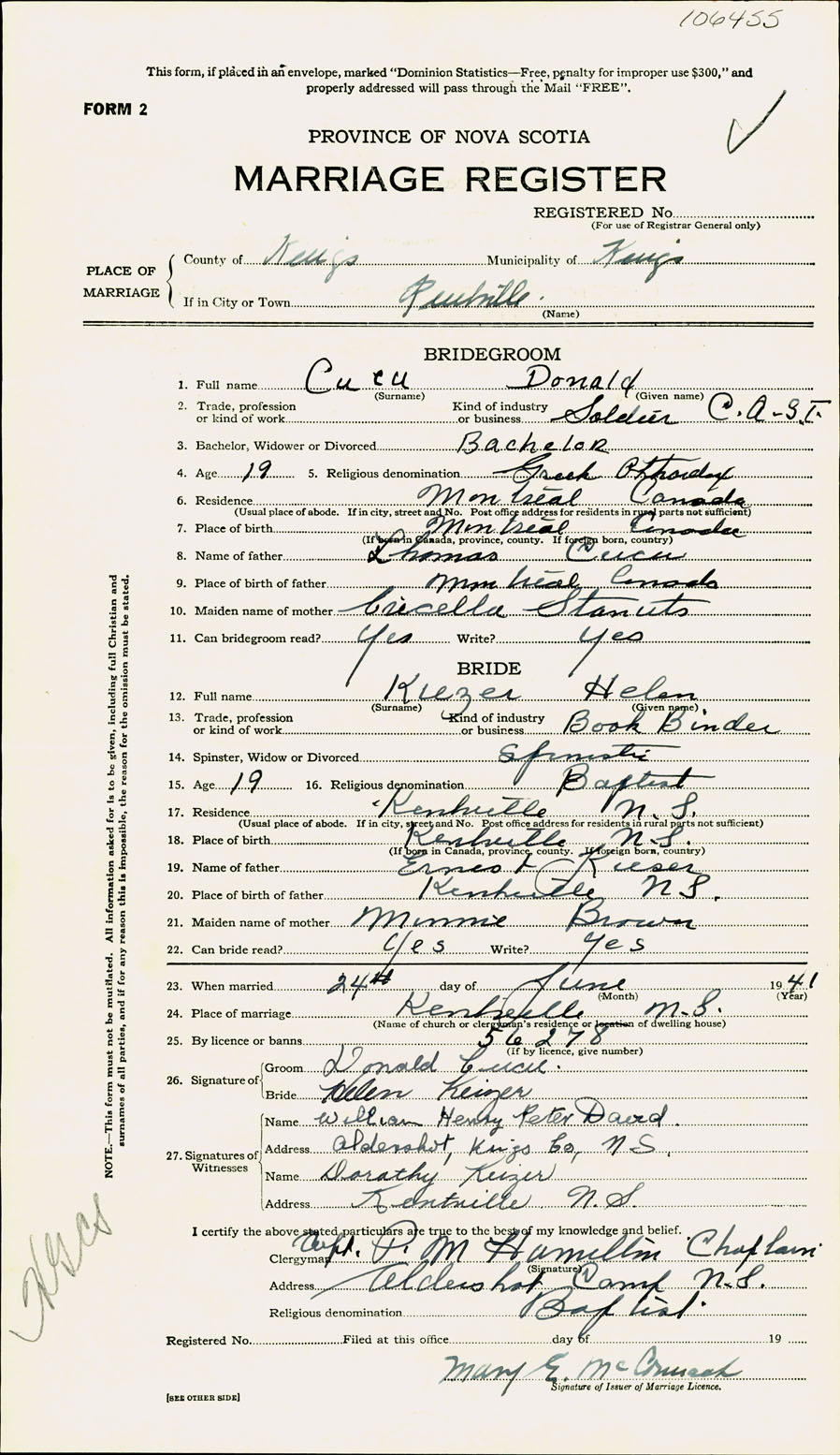 Registration: Year: 1941 number: 106455