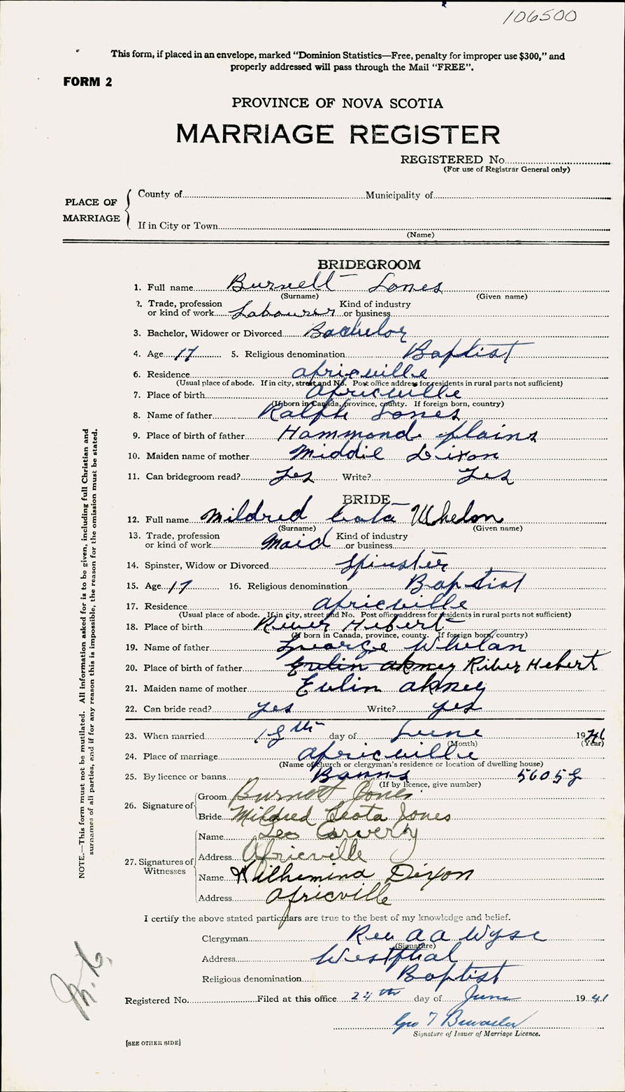 Registration: Year: 1941 number: 106500