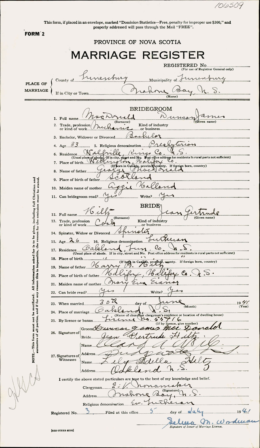 Registration: Year: 1941 number: 106509