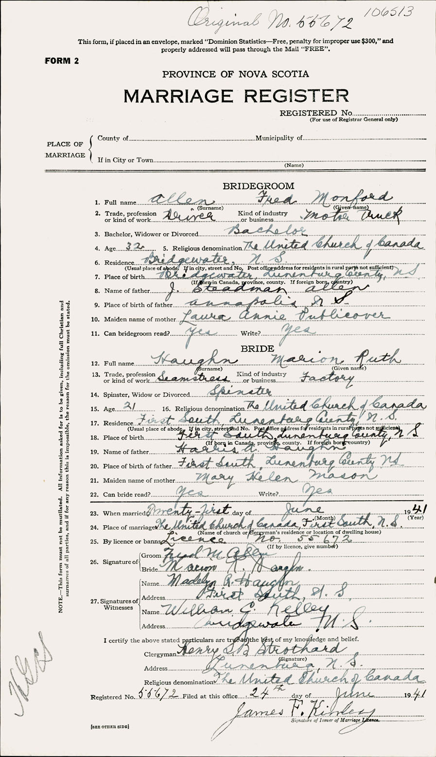 Registration: Year: 1941 number: 106513