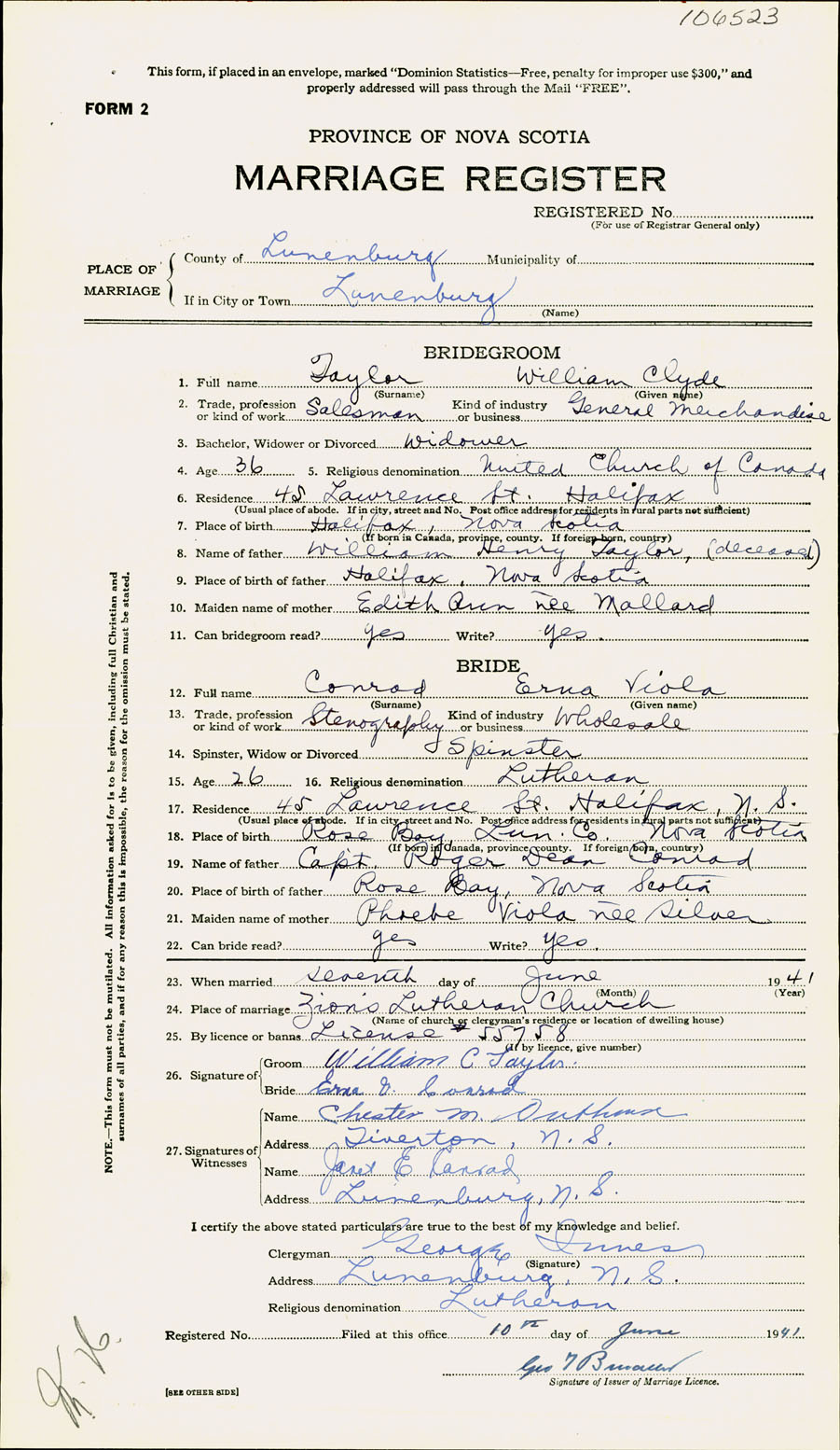 Registration: Year: 1941 number: 106523