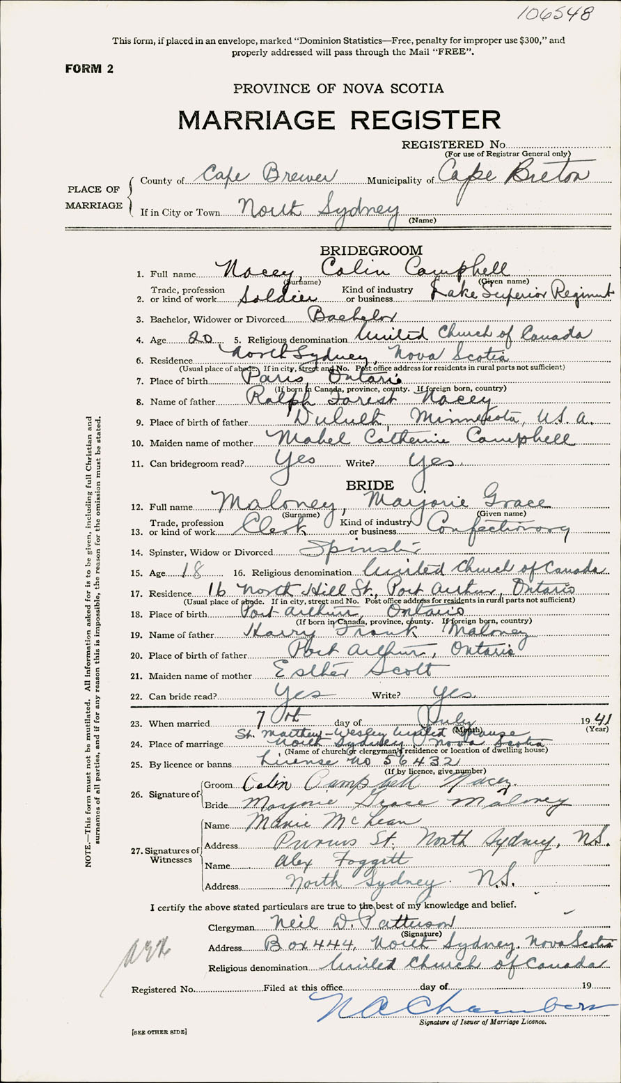 Registration: Year: 1941 number: 106548