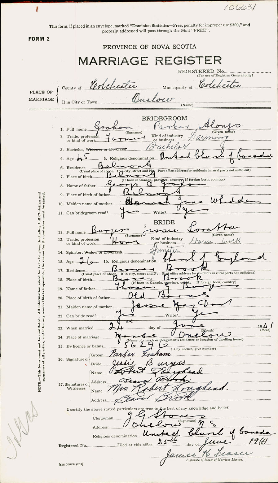 Registration: Year: 1941 number: 106631