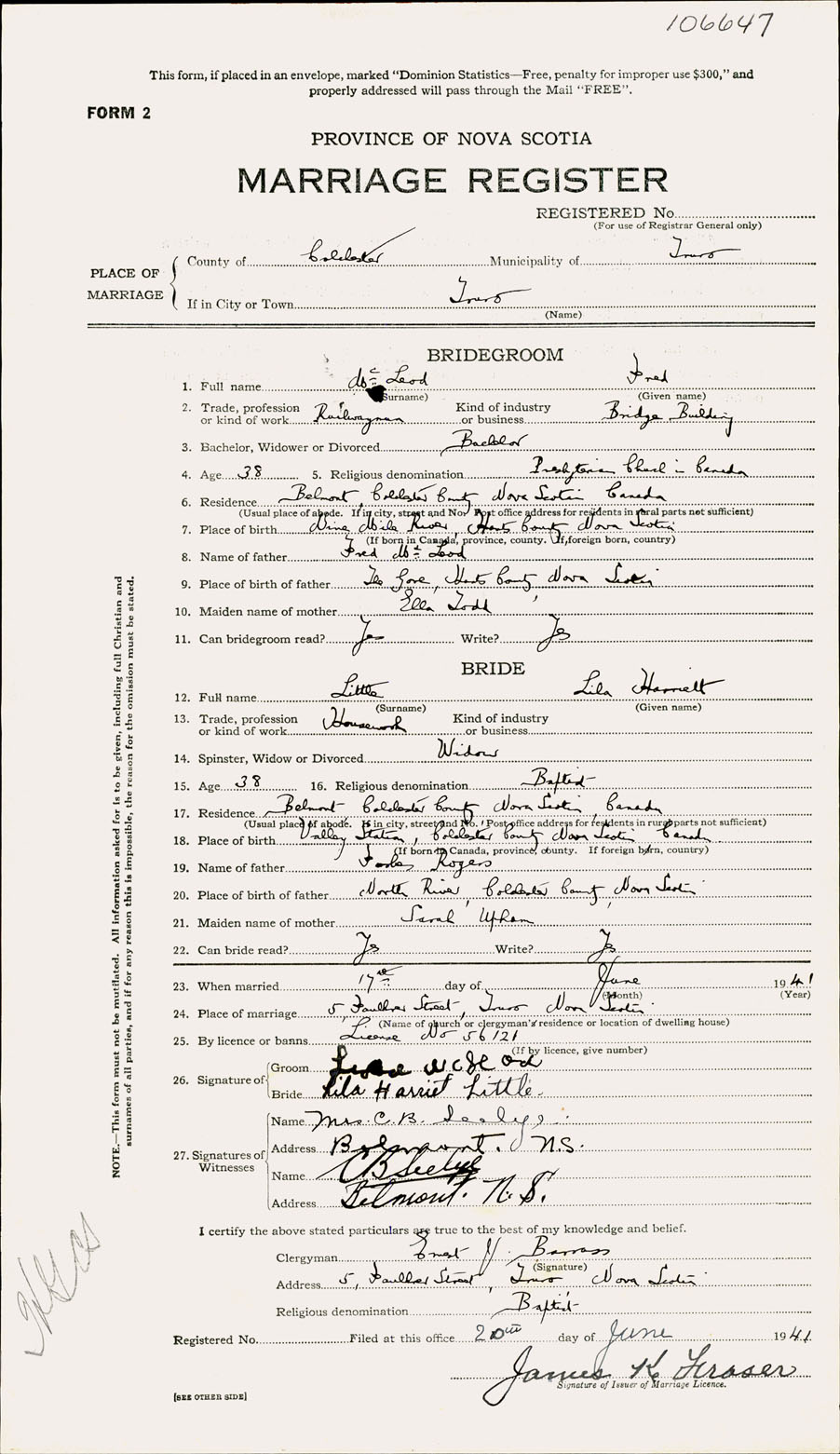Registration: Year: 1941 number: 106647